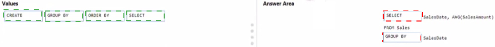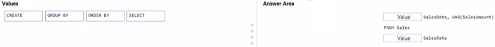 How should you complete the query? To answer, drag the appropriate values to the correct targets. Each value may be used once, more than once, or not at all. You may need to drag the split bar between panes or scroll to view content.