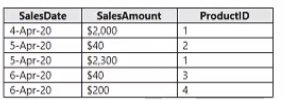 You need to query the table to return the average sales amount day. The output must produce the following results.