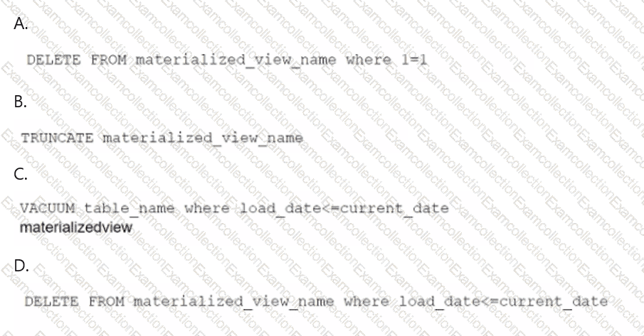 A data engineer maintains a materialized view that is based on an Amazon Redshift database. The view has a column named load_date that stores the date when each row was loaded.