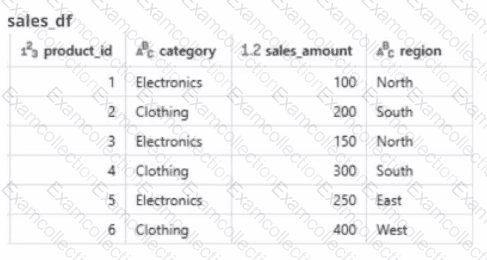 A global retail company sells products across multiple categories (e.g.. Electronics, Clothing) and regions (e.g.. North. South, East. West). The sales team has provided the data engineer with a PySpark dataframe named sales_df as below and the team wants the data engineer to analyze the sales data to help them make strategic decisions.