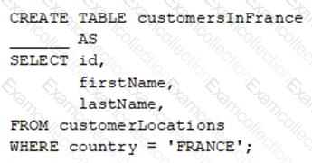 A data engineer wants to create a new table containing the names of customers that live in France.