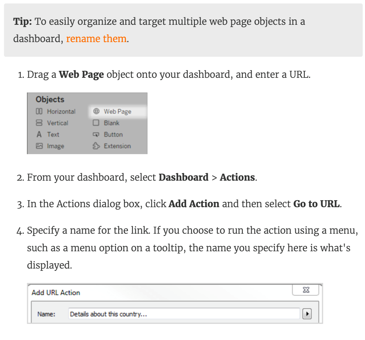 Is it possible to deploy a URL action on a dashboard object to open a Web Page within a dashboard rather than opening the system’s web browser?