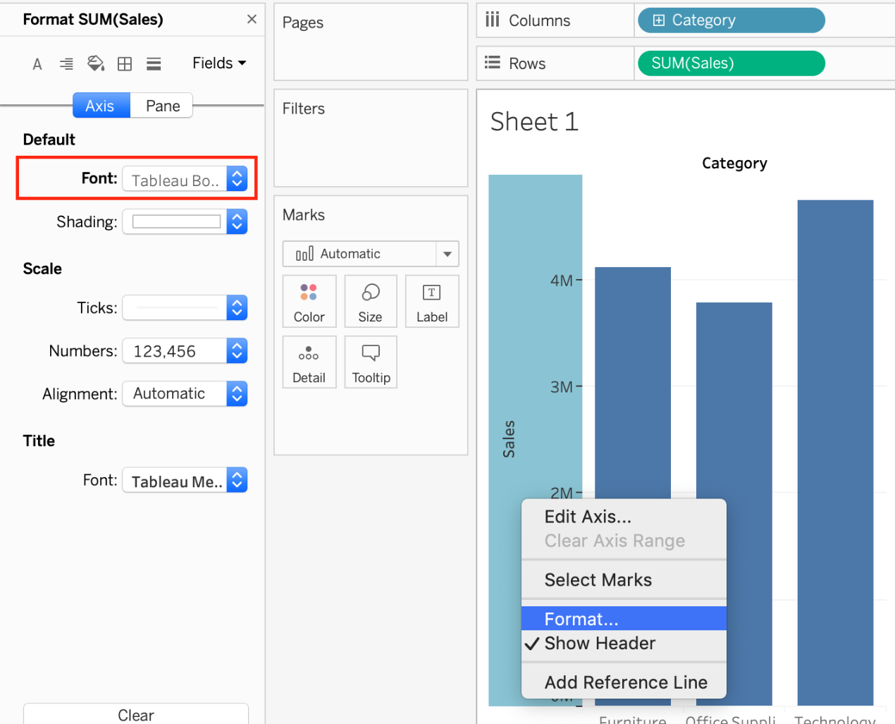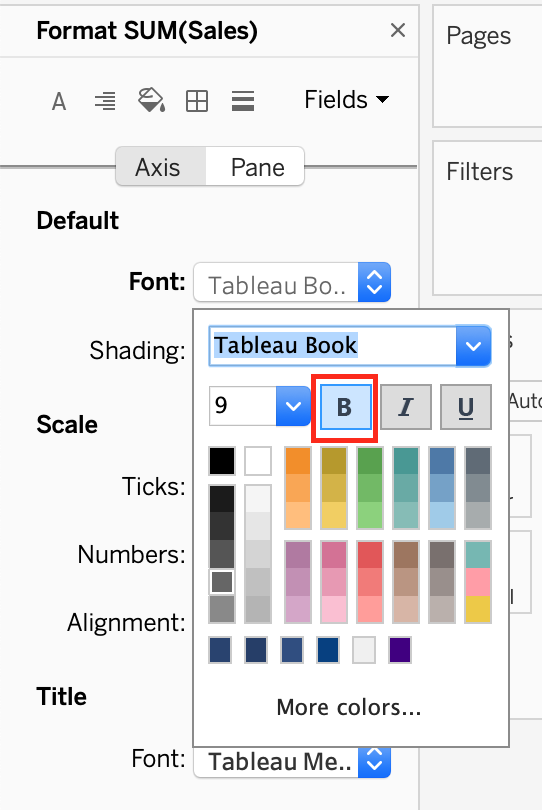 How can you format an axis as Bold in Tableau?