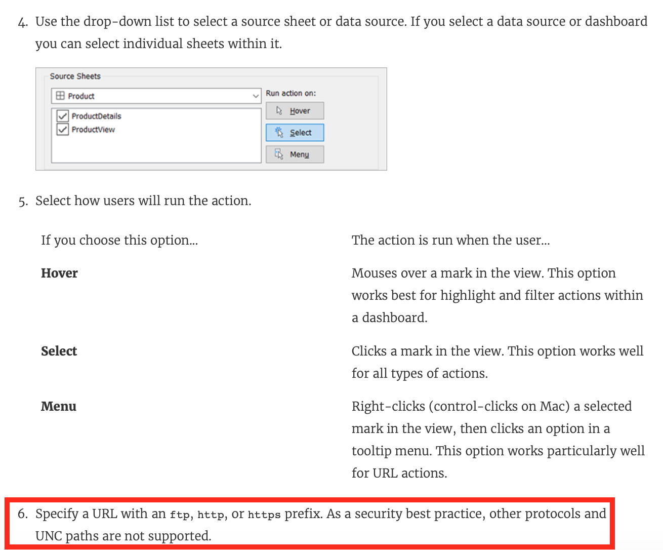 Which of the following URLÂ prefixes are permitted when creating a URLÂ Action in Tableau?