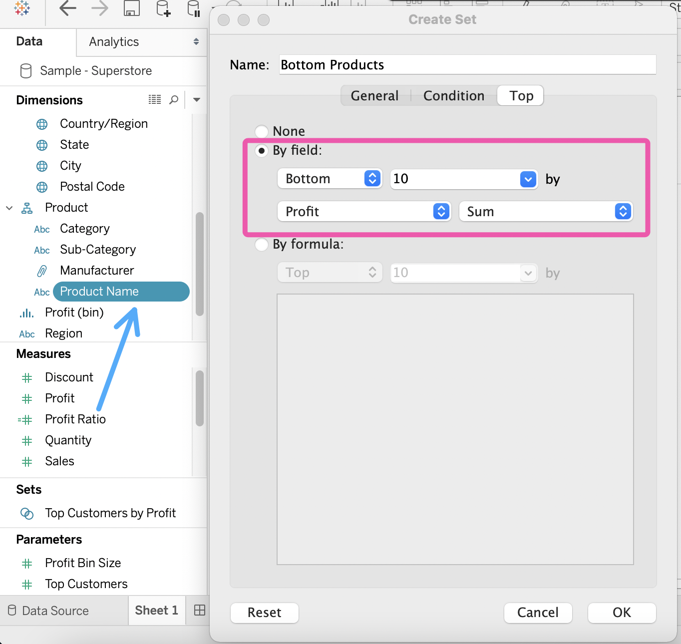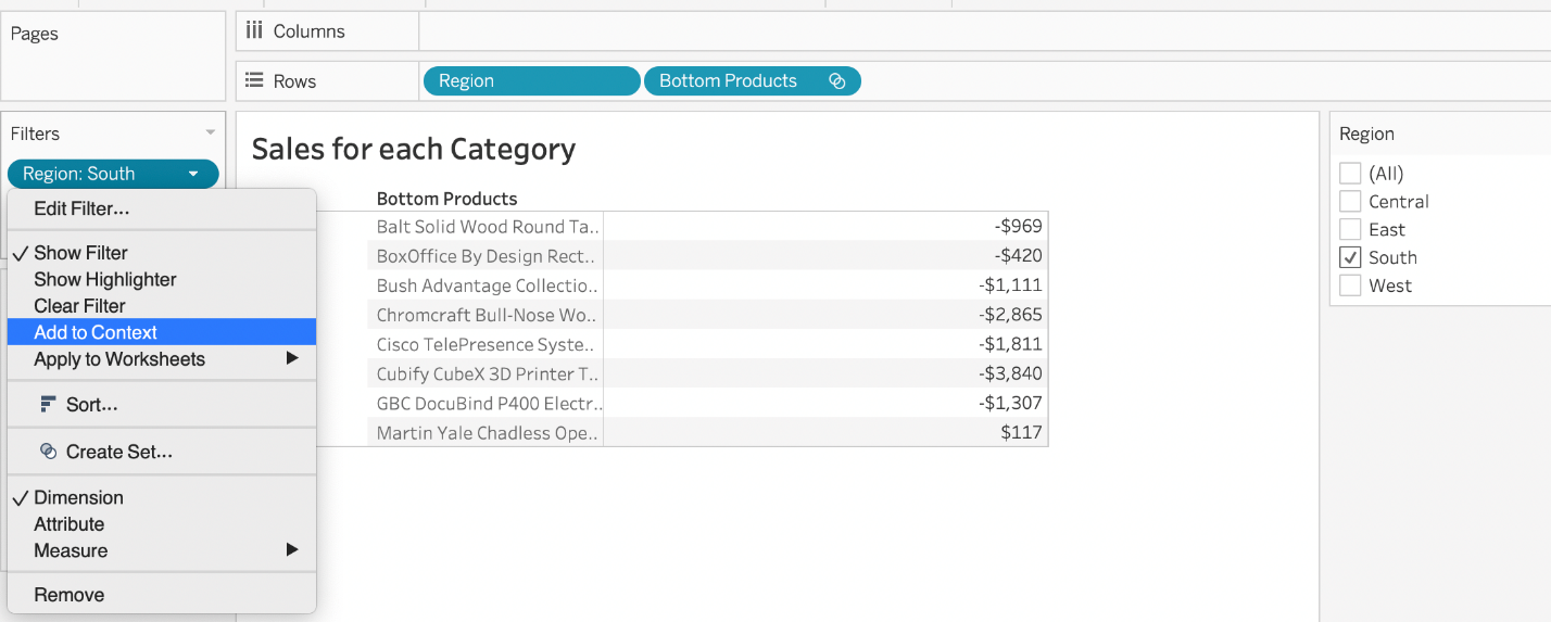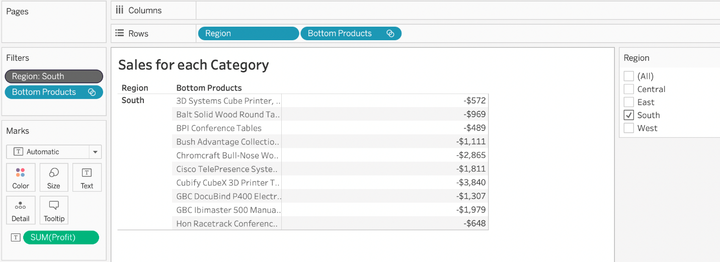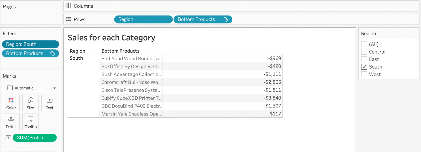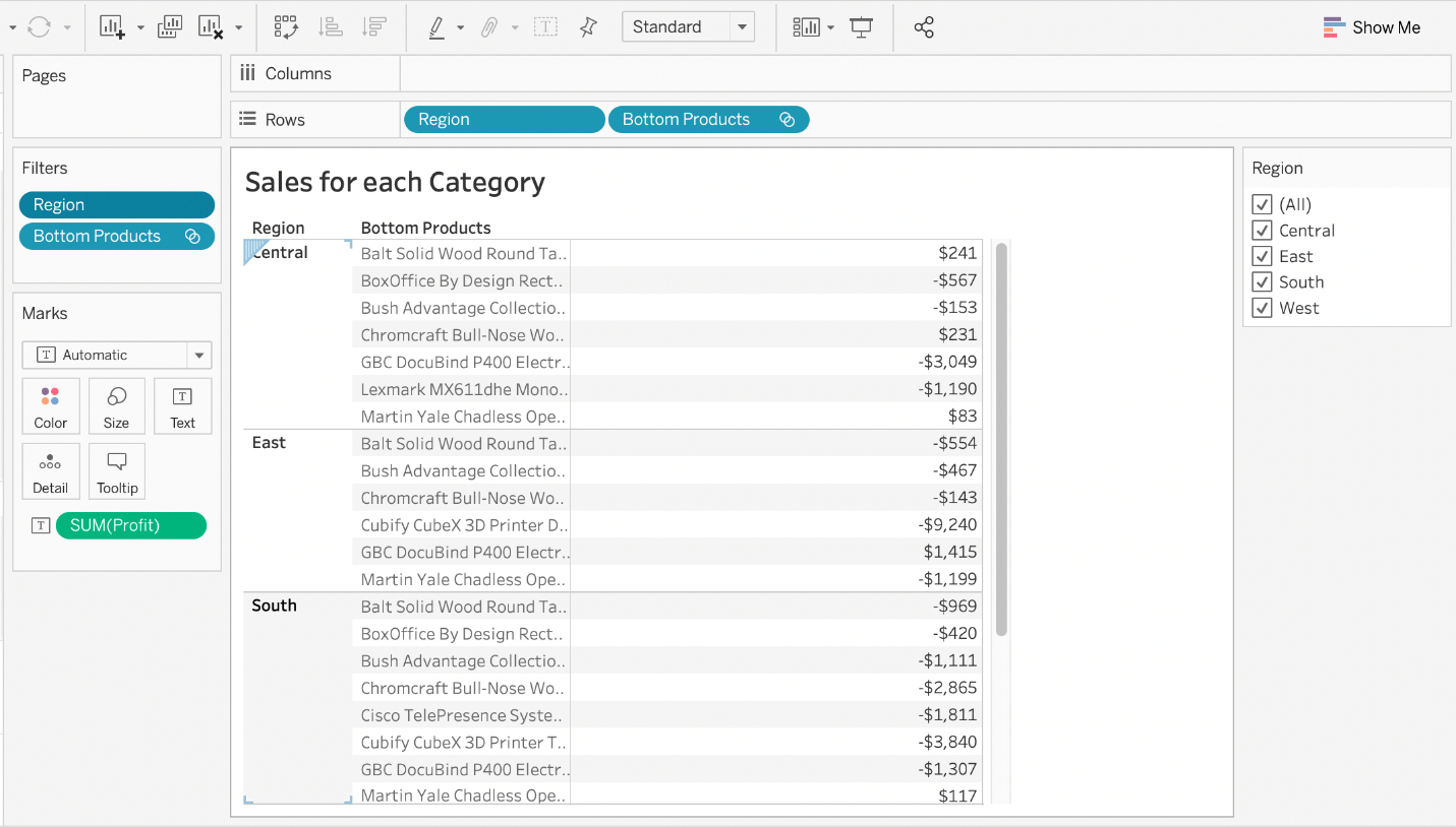 Our use case states that we need to create a set showing the Bottom 10 products by Profit in each Region. Which of the following filter types should you apply on Region?
