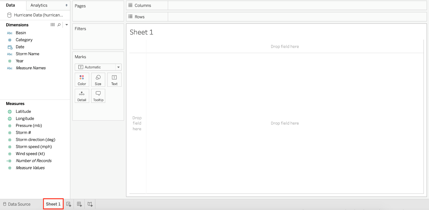 You clicked Sheet 1 from the data source page, and now you have opened the Tableau Desktop workspace as shown above. What is the main thing that you do here?