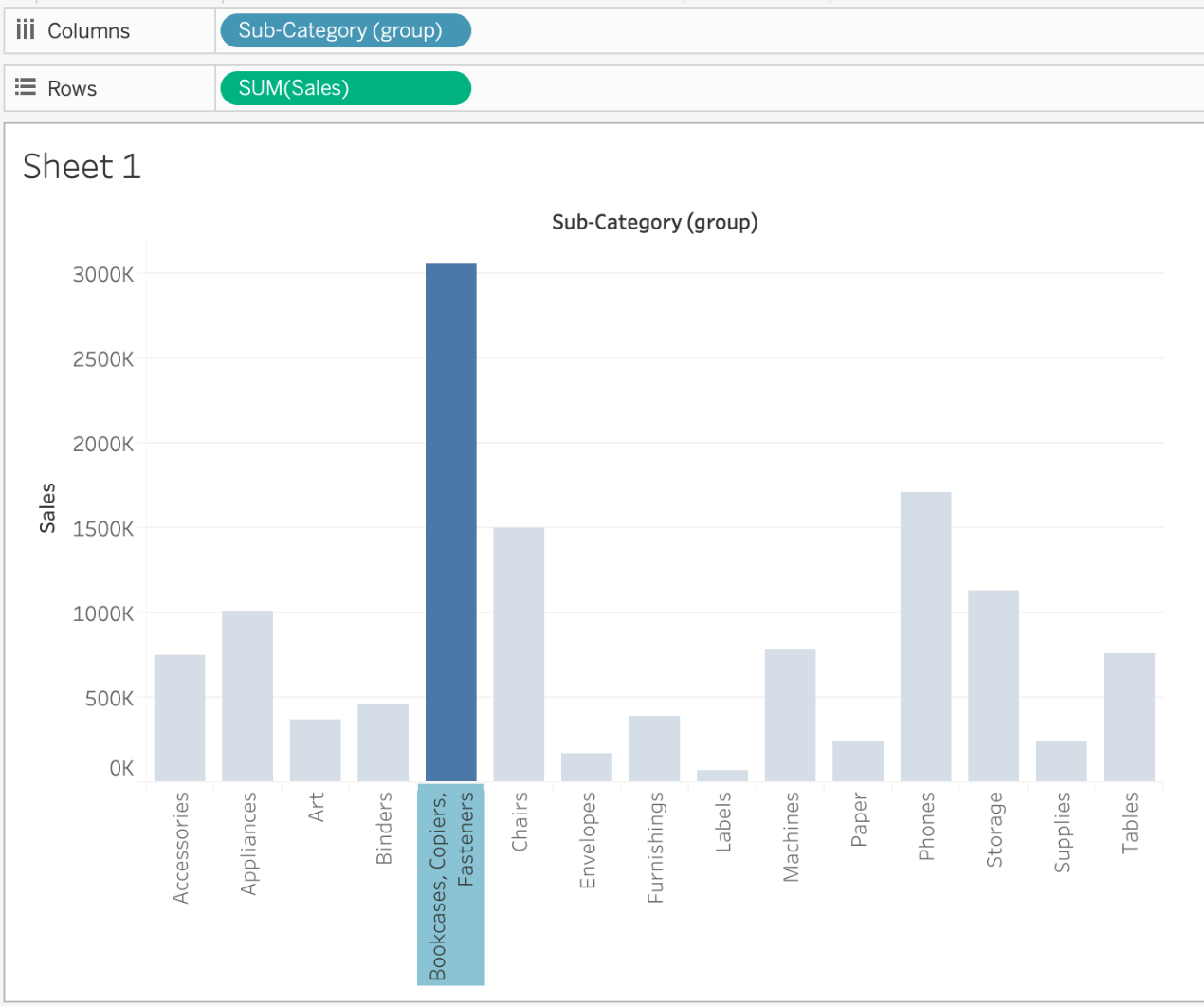 Suppose you have a bar chart. When we group by labels in a view, which of the following happens?