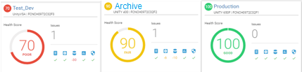 What is a possible reason for the health score of 70 that is associated with the Test_Dev storage pool?