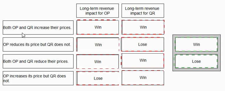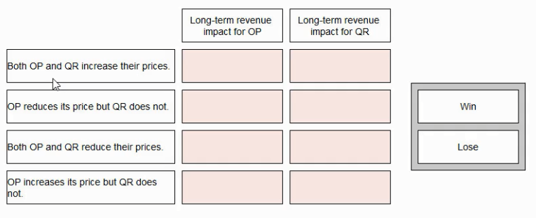 Applying game theory, select the correct long-term revenue impact for each company for each of the following pricing decisions: