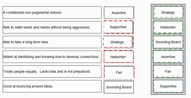 Select the quality associated with effective coaching and mentoring for each of the descriptions below: