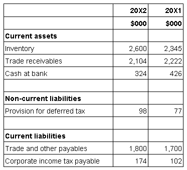 Within OO's statement of cash flow for the year ended 31 March 20X2 which figures should be included to reflect the changes in working capital within the net cash flow from operating activities?