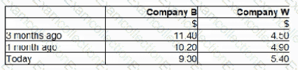Company W has received an unwelcome takeover bid from Company B. The offer is a share exchange of 3 shares in Company B for 5 shares in Company W or a cash alternative of $5.70 for each Company W share.