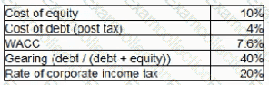 Company A has been established to develop a new type of engine which will be launched at the end of 20X1. Company A is forecasting that the new engine will result in free cash flows to equity of $2m in its first year of operation and that this will rise by 8% per year for the foreseeable future.