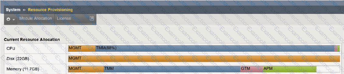 The exhibit displays the current resource allocation from theSystem → Resource Provisioningpage.