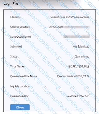 You provide a webserver hosting service. An endpoint downloads a test file, testfile.txt, that gets blocked by FortiClient.