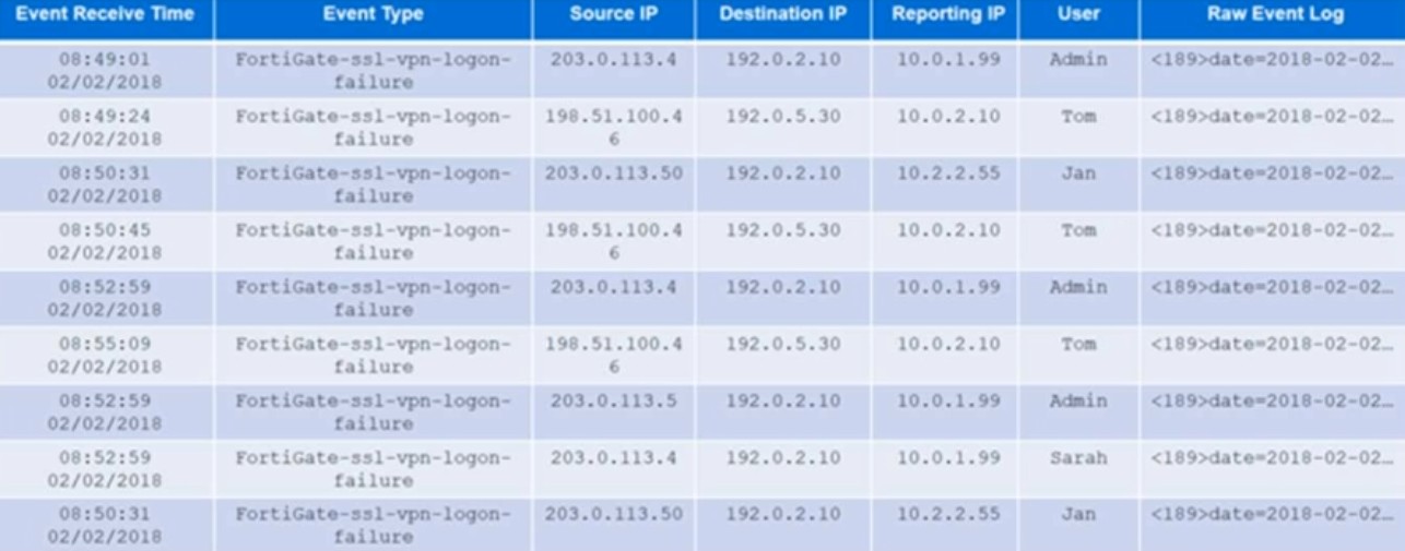 An administrator runs an analytic search for all FortiGate SSL VPN logon failures. The results are grouped by source IP, reporting IP, and user. The administrator wants to restrict the results to only those rows where the COUNT >=3.