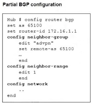 Refer to the exhibit, which shows the ADVPN network topology and partial BGP configuration.