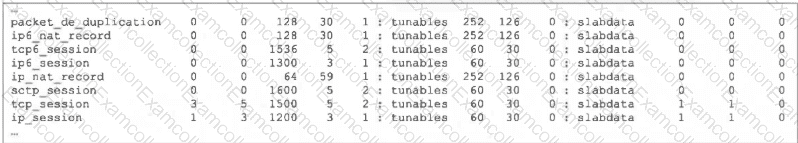 Refer to the exhibit, which shows the partial output of FortiOS kernel slabs.