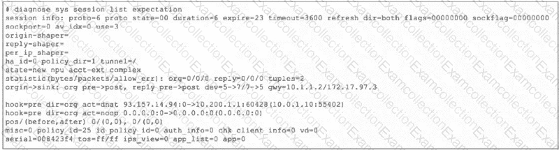 Refer to the exhibit, which shows the omitted output of a session table entry.