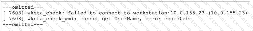 The output from a collector agent log is shown. The collector agent is showing the status of a workstation as Not Verified . What are two common causes for this message? (Choose two.)