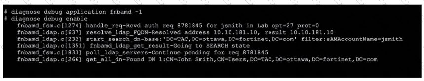 Refer to the exhibit, which shows a truncated output of a real-time LDAP debug.