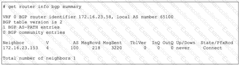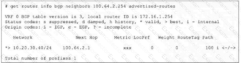 Refer to the exhibit, which shows the output of the command get router info bgp neighbors 100.64.2.254 advertised-routes.