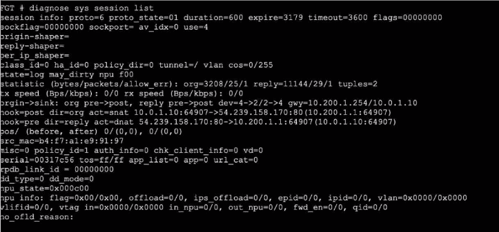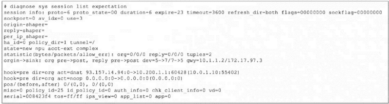 Refer to the exhibit, which shows the omitted output of a session table entry.