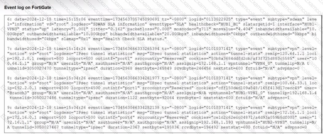 Refer to the exhibit that shows event logs on FortiGate.
