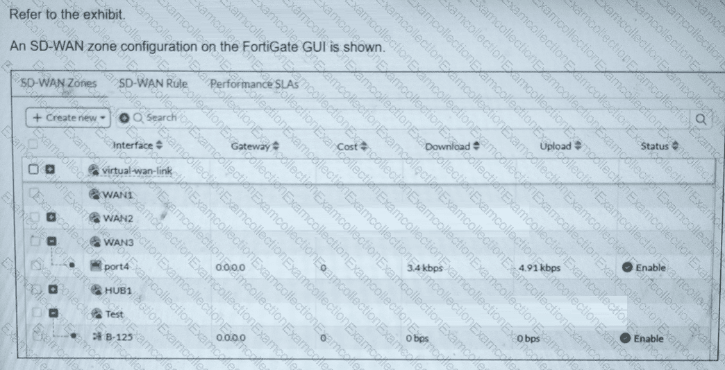 An SD-WAN zone configuration on the FortiGate GUI is shown.