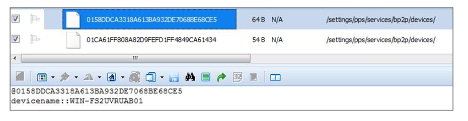 What information can you determine by reviewing the (bp2p) file from a BlackBerry OS10 handset?
