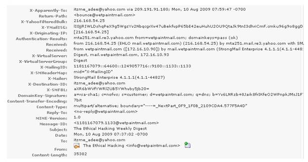 You work as a Network Security Analyzer. You got a suspicious email while working on a forensic project. Now, you want to know the IP address of the sender so that you can analyze various information such as the actual location, domain information, operating system being used, contact information, etc. of the email sender with the help of various tools and resources. You also want to check whether this email is fake or real. You know that analysis of email headers is a good starting point in such cases. The email header of the suspicious email is given below: