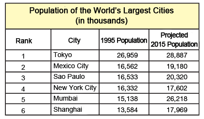 In which of the listed cities is the population in 2015 projected to be more than a 50% increase from the 1995 population?