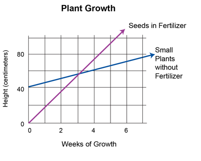 After how many weeks of growth was the height of the seeds in fertilizer the same as the height of the small plants not fertilized?