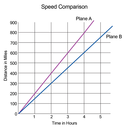 City Commuter Airplane Service is considering the purchase of another airplane for its fleet. The cruising speeds of the two choices are shown in the graph below.