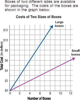 The slope of each line shows the cost per box. What is the cost of each LARGE box?