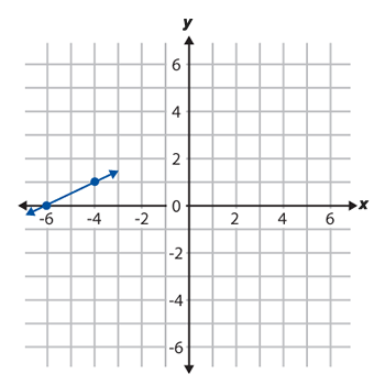 A line has a slope of1/2and passes through the point (-4,1). Part of the line is shown below.