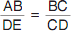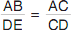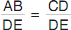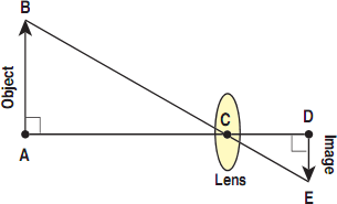 Which of the following proportions shows the relationship between the height of the object (AB) and the height of its image (DE) in the diagram at the left?