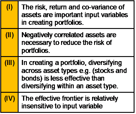 Modern “Asset Allocation†is based upon the model developed by Harry Markowitz. Which of the following statement is/are correctly identified with this Model?