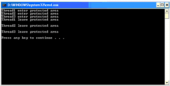You work as a Software Developer for ManSoft Inc. The company uses Visual Studio .NET 2005 as its application development platform. You create an application named MyApplication using Visual C# .NET. You use the Mutex class for synchronization among threads. You create three threads to enter the protected area one by one. This means that if one thread is already in the protected area, no other thread is allowed to enter in the protected area. When you execute the application, it gives the following output: