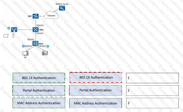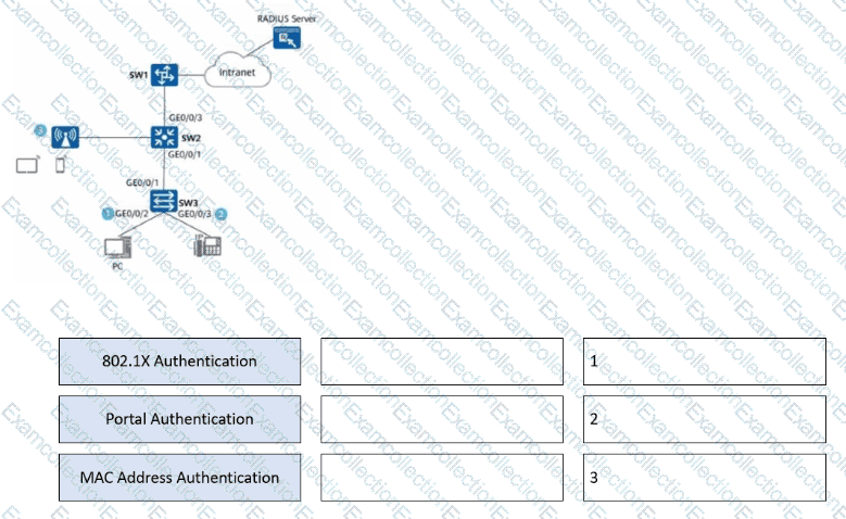 Network admission control (NAC) needs to be deployed on the network shown in the figure. Drag a proper authentication mode to each authentication point.