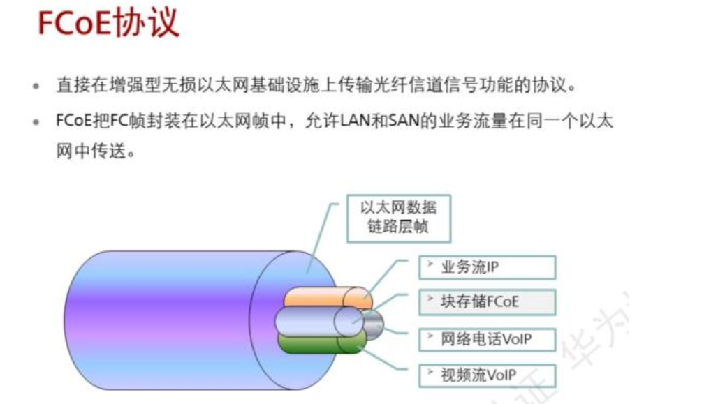 The FCoE protocol refers to encapsulating the FC protocol into a TCP/IP protocol package and transmitting it on Ethernet.