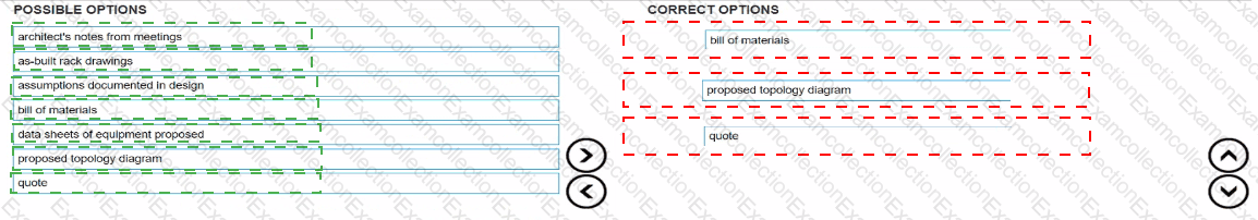What documents should be included in the solution proposal? (Place the correct items into the list at the right. Order is not important. Not all options will be used)