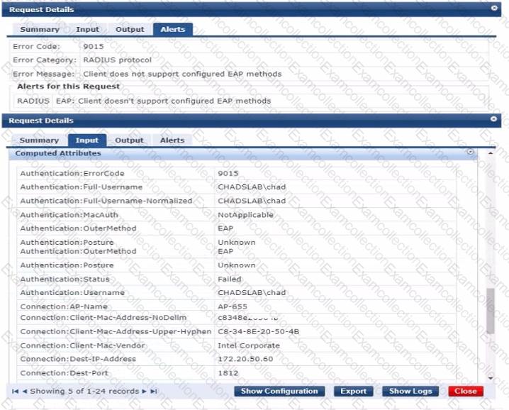 A Windows device attempts to connect to an 802.1X network but it is not receiving the correct role. TEAP has been configured as the only authentication method in ClearPass. The wireless configuration is correct.