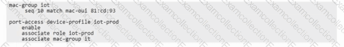 The test device needs to be assigned the "iot-prod" role. In addition, the "iot-default" role must be applied for any other device connected to interface 1/1/1.