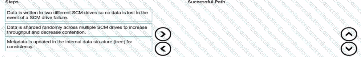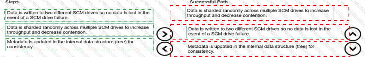 Order the steps for a write data path and a successful write IO in HPE GreenLake for File Storage using NAS.