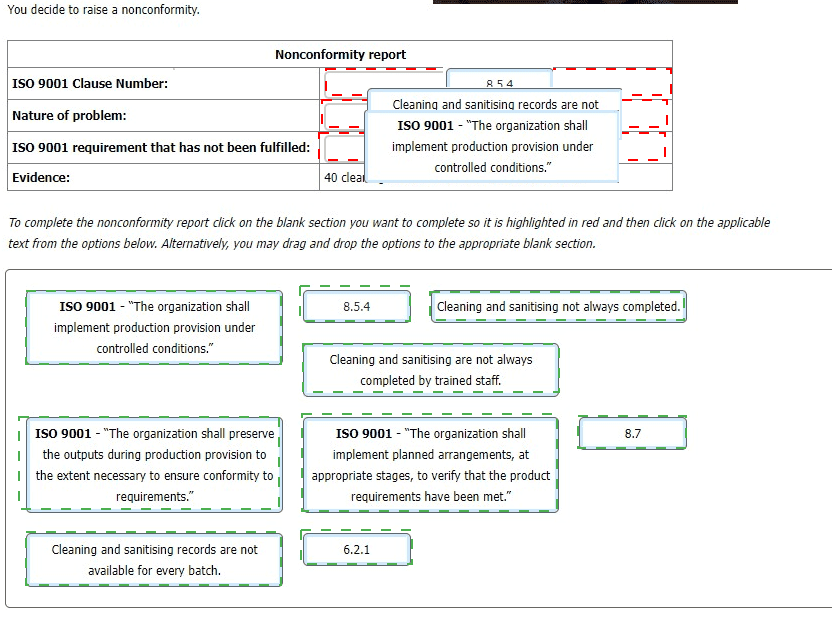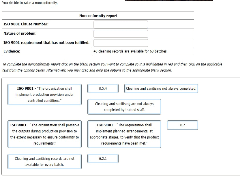 Based on the scenario, select the three options which best describe the evidence for raising such a nonconformity.