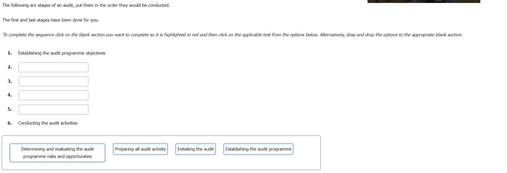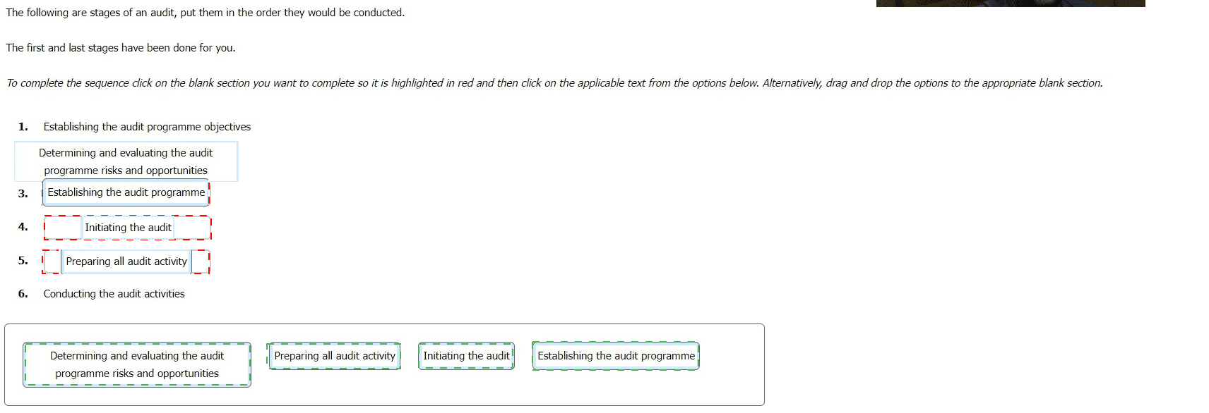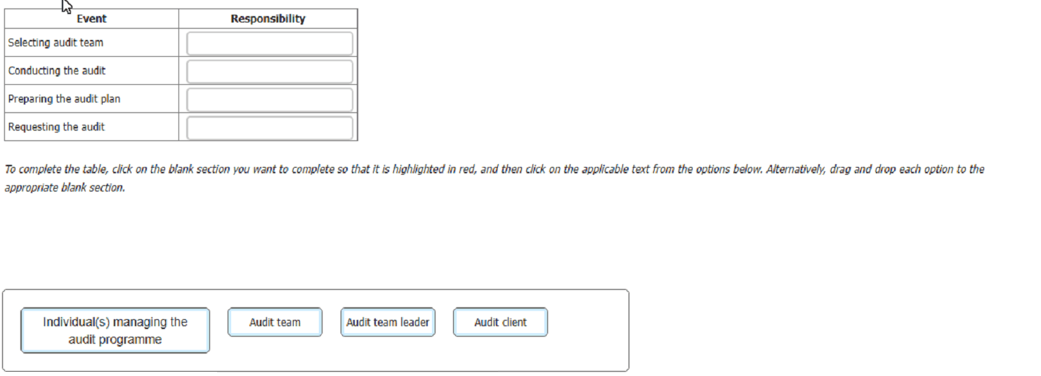 In the context of a third-party audit, match the event with the responsibility for conducting it.