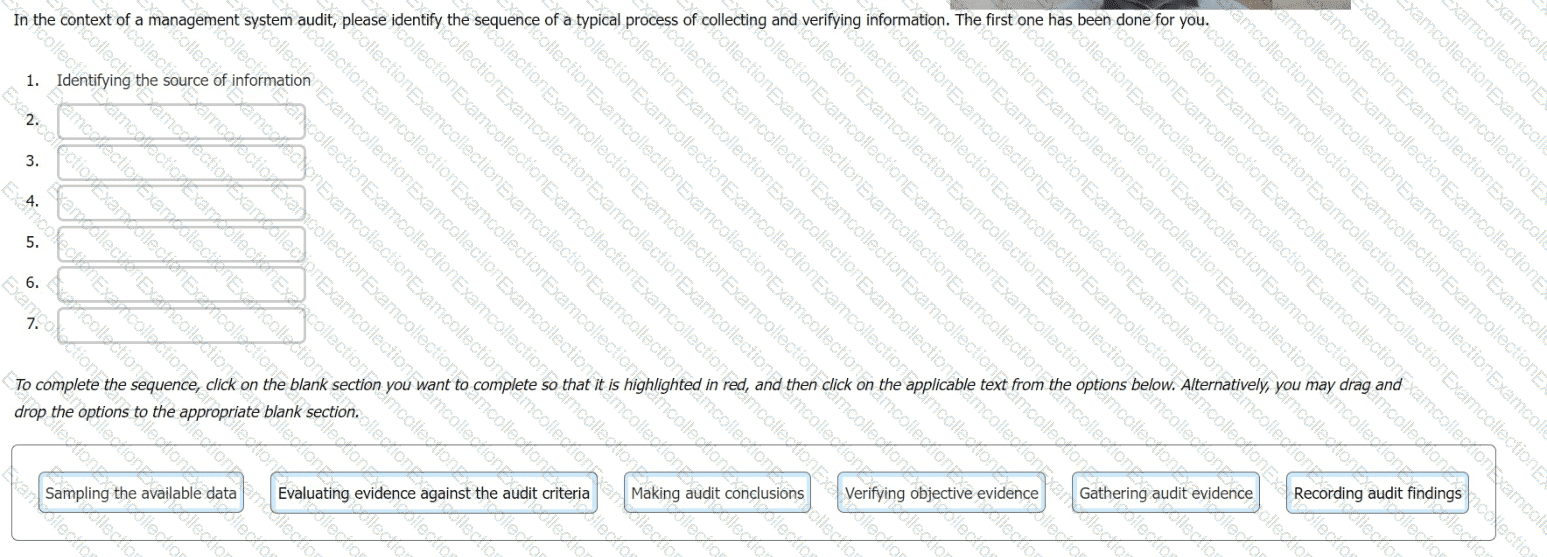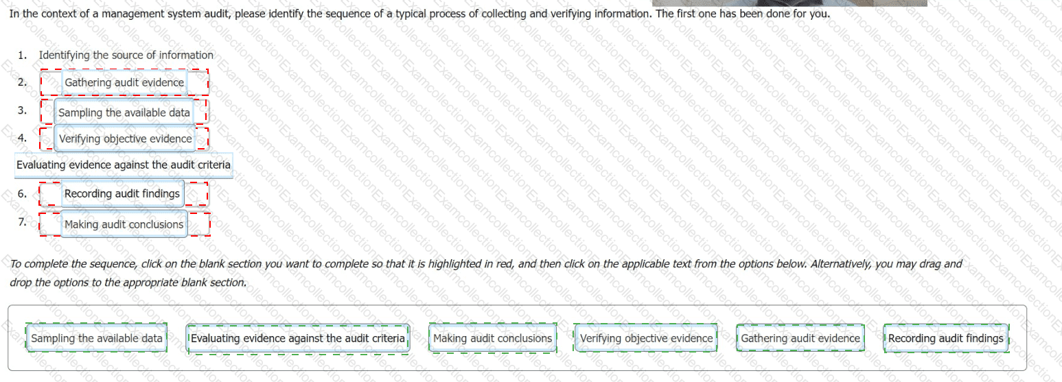 In the context of a management system audit, please identify the sequence of a typical process of collecting and verifying information. The first one has been done for you.