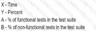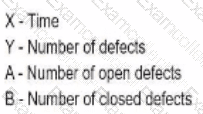 The following chart represents metrics related to testing of a project that was competed. Indicate what is represented by tie lines A, B and the axes X.Y