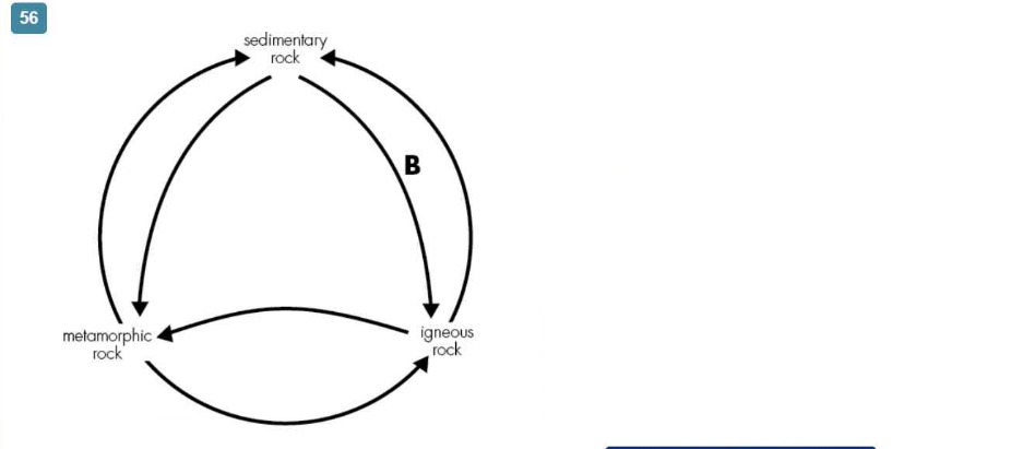 A student makes the diagram of the rock cycle that is shown here
